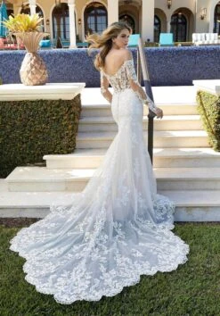 This beautiful Mori Lee 72604 masterpiece will let you exude the vibrant personality you have. This elegant evening gown features an off-the-shoulder neckline along with illusion long sleeves that are embellished with gorgeous beaded lace appliqués. The back is secured with a concealed zipper with a little ruching at the waist which is great for any body types. This fit-and-flare crepe gown has tailoring lines that define the silhouette, and it is finished with a sweep train for an extra touch of refinement. In this one-of-a-kind design by Mori Lee MOB, you’ll turn heads on that special event! Models are wearing Silver, and Navy colors.