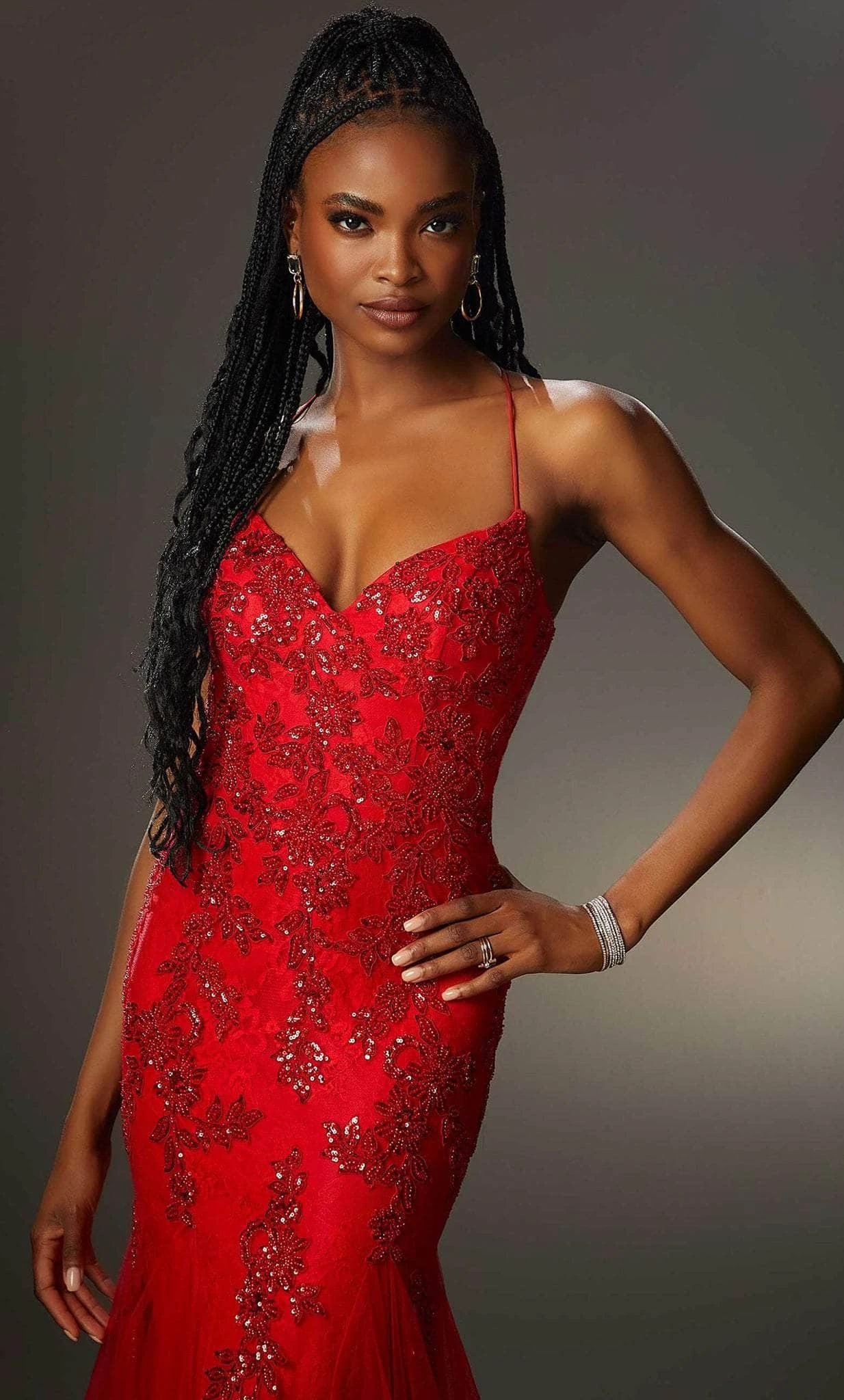 Every girl deserves to have a memorable prom and this eye catching Mori Lee 48072 evening dress. This dress features a sleeveless bodice, a plunging sweetheart neckline, as well as a corset lace-up back as the bodice is embellished with beaded and floral appliques. The sparkling trumpet tulle skirt flares from a mid thigh to a sweeping denouement to complete your look. Be the queen of the night when you wear this Mori Lee 48072. Models are wearing Ruby Red, and Jade colors.
