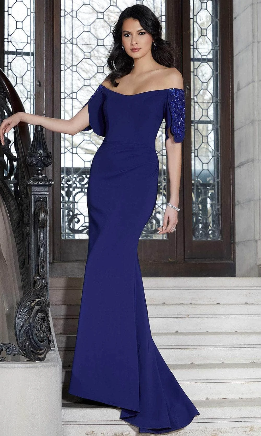 This Mori Lee 72613 creation will indeed create a striking look that will make anyone remember your grand entrance. It features an off-shoulder neckline paired with elbow sleeves that are embellished with beads, while the entire garment is tailored in jersey fabric closed with a back zipper closure and ends with a floor-length hem. Leave everyone speechless when you enter the room in this Mori Lee 72613 masterpiece. Models are wearing Blush and Sapphire colors.