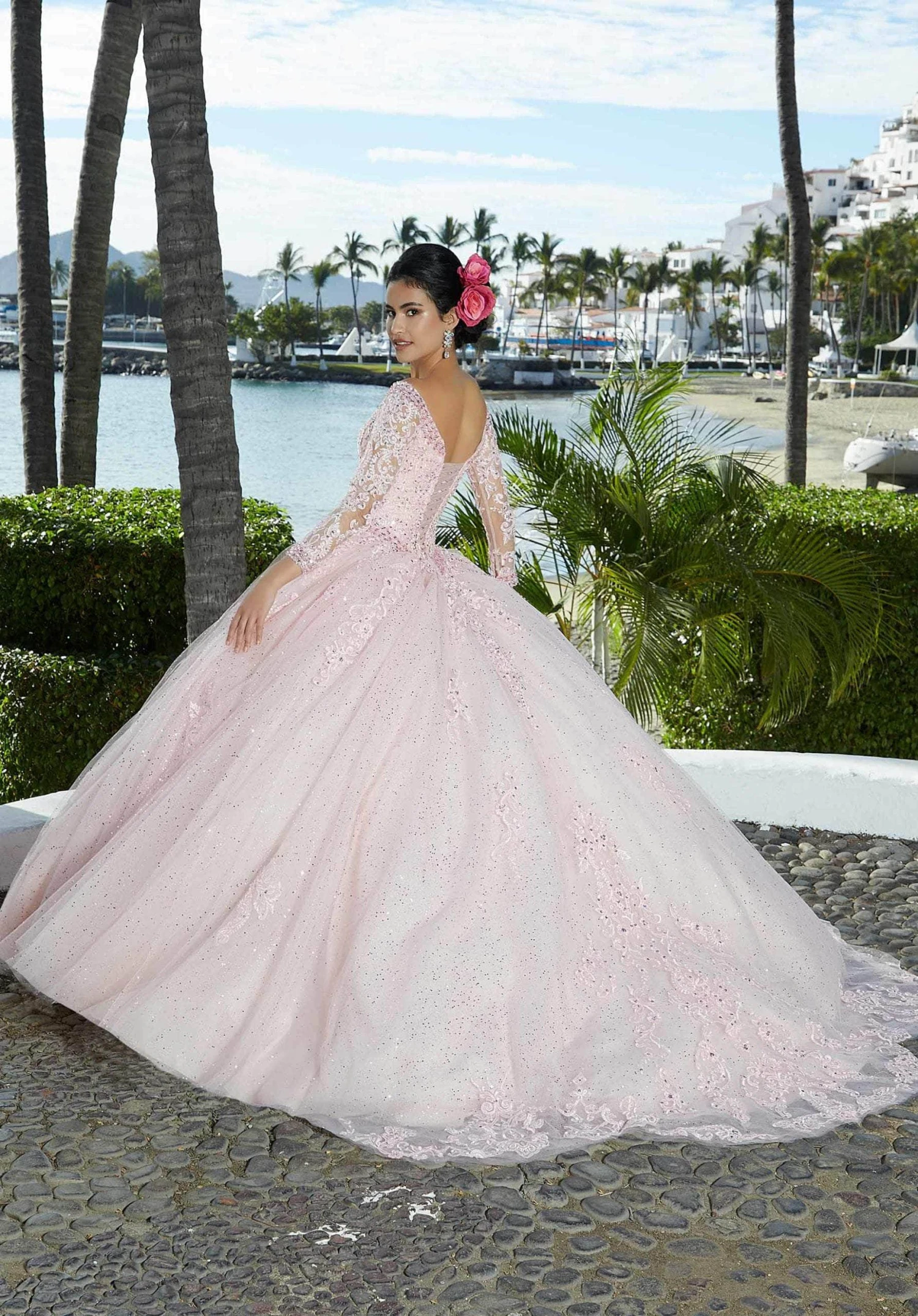 Surround yourself with a sparkle of glamour while wearing this dazzling quinceanera dress from Mori Lee 89360 creation. The bodice of this dress is embellished with crystal beads and applique details and has an off-shoulder neckline with long sleeves. The gorgeous full-length skirt has a shimmering tulle finish and a ball gown silhouette. Be the center of attention in this stunning dress from Mori Lee 89360 creation. Models are wearing Regal/Royal, Blush, and Scarlet colors.