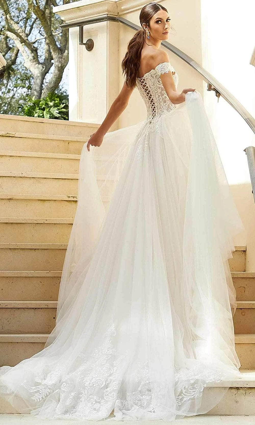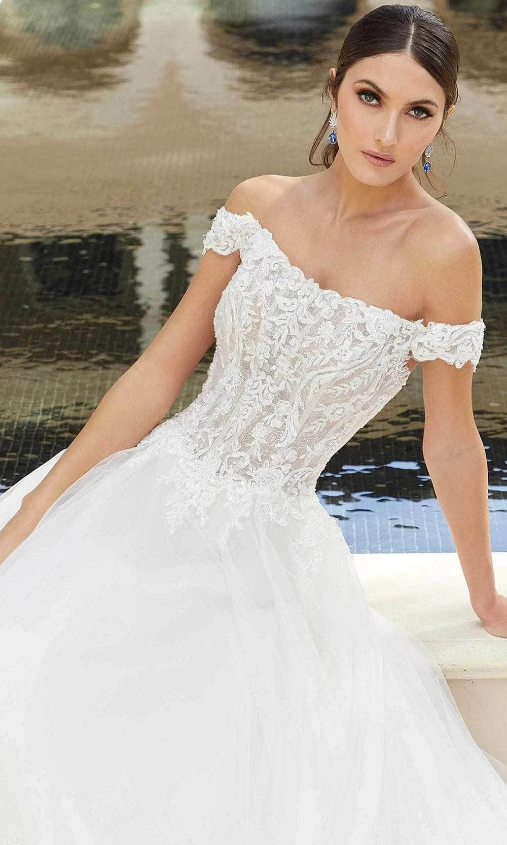 Mori Lee Bridal 5987 – Embroidered Straight Across Wedding Dress
