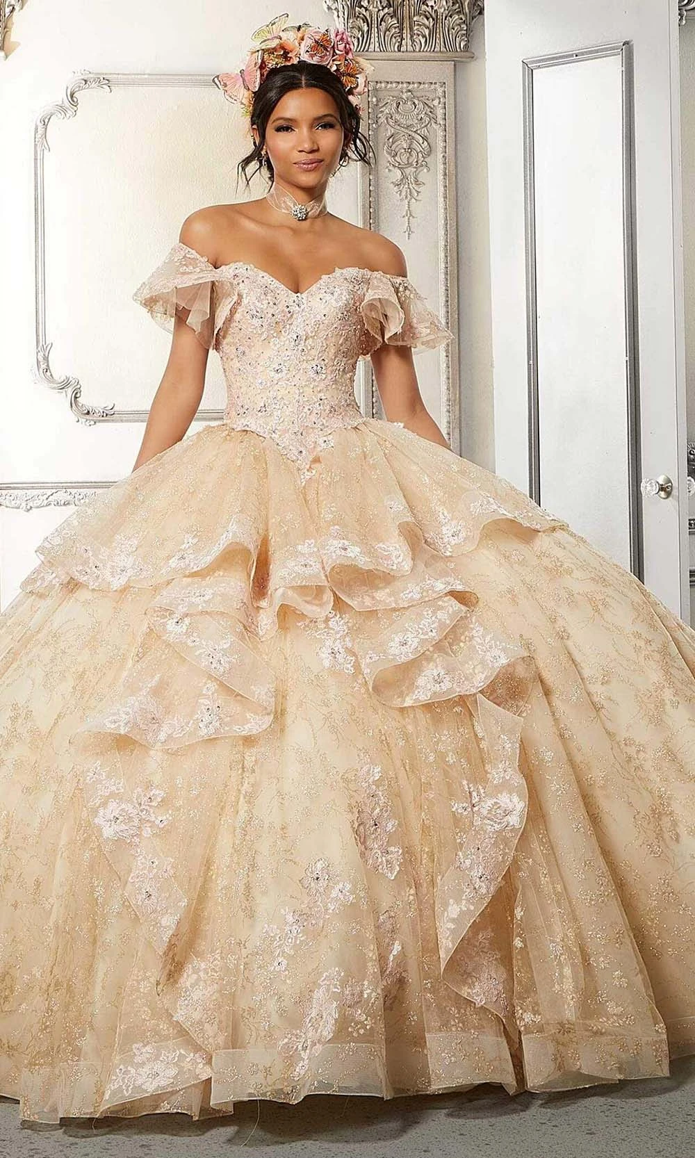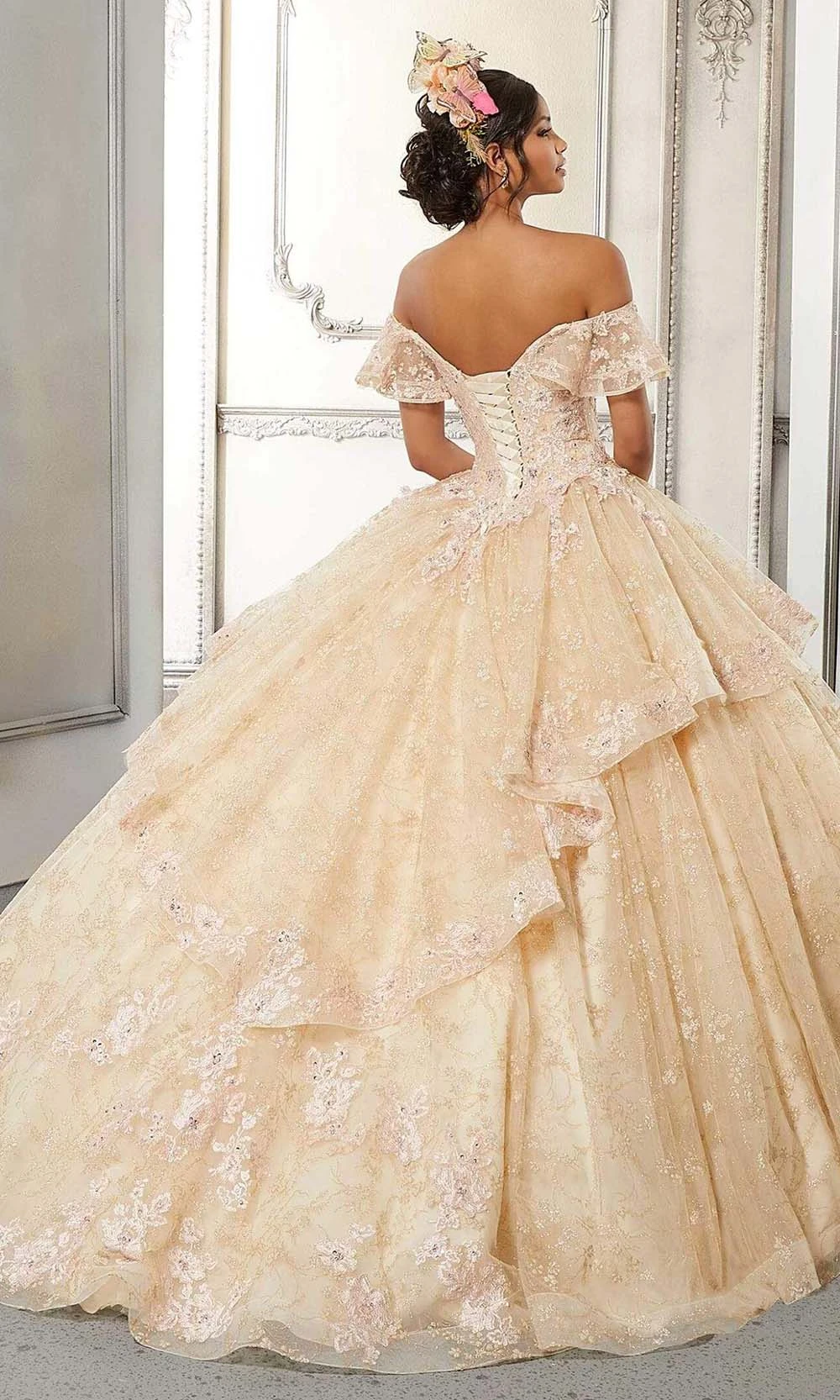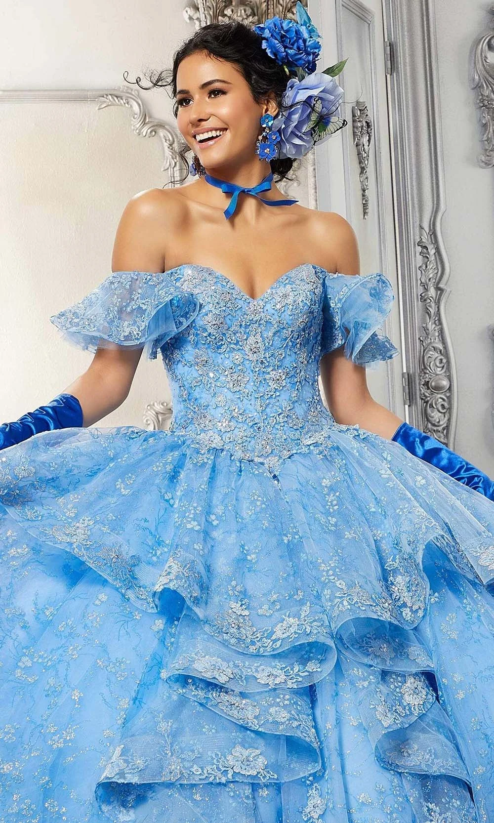 Draw out the princess in you with this enchanting Vizcaya by Mori Lee 34051 ball gown. This evening gown highlights a sweetheart neckline supported by detachable flutter sleeves in an appliqued, beaded and glittery bodice. Having a basque waistline, this dress also shows a mid-open back with lace up back closure. This Vizcaya by Mori Lee creation is truly remarkable! More colors available. Please call our sales team at 855-700-4239.