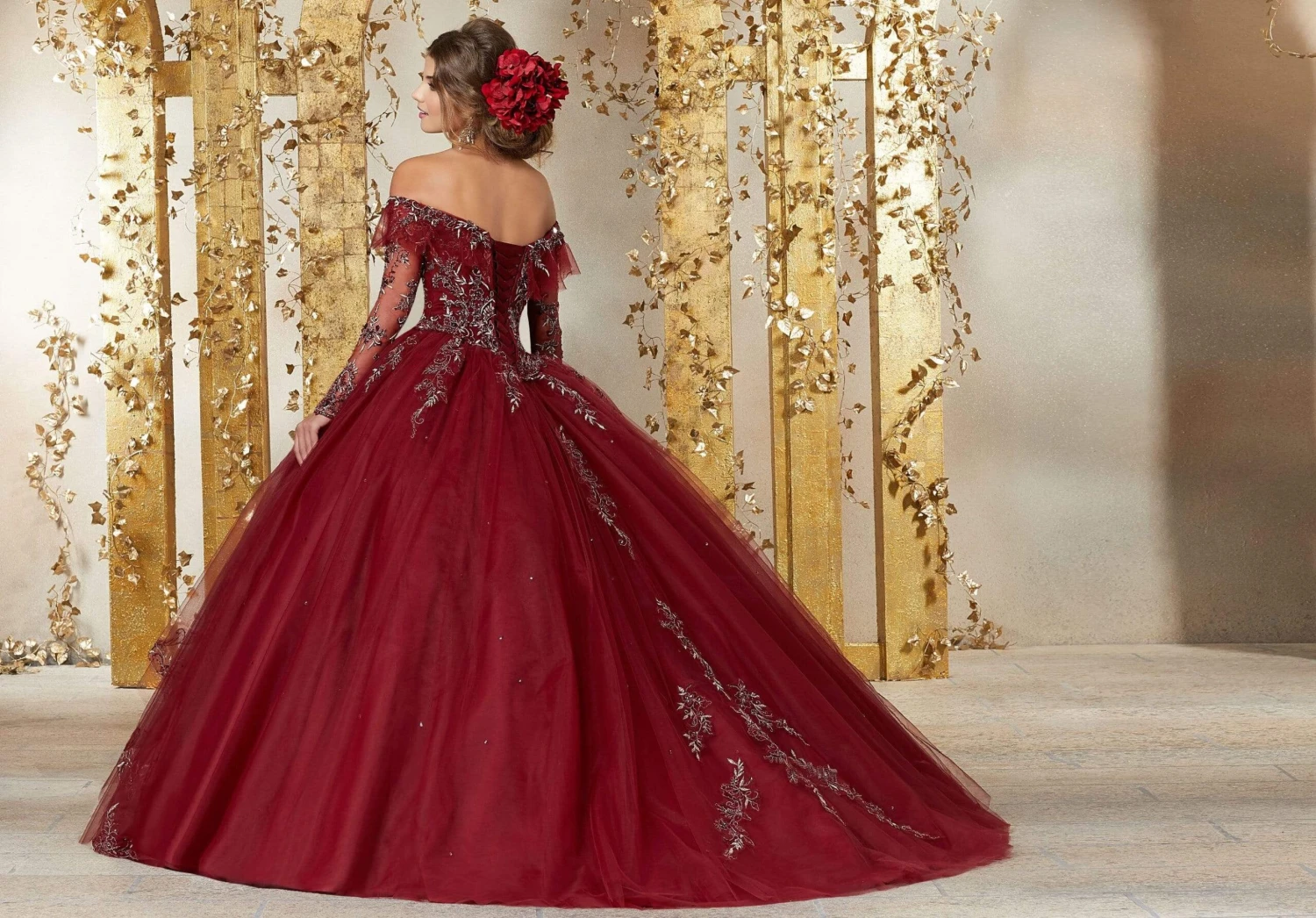 Stand out with a queenly sophistication at your whimsical party with this spectacular creation from Vizcaya by Mori Lee 89235. Beautifully crafted with embroidery details with tonal gem stone beads on a corset style bodice, this dreamy piece shows an off-shoulder neckline with sheer gathered flounce and long slender sheer sleeves with embellished with similar beaded embroidery. The back reveals lace-up detail for that alluring sculpted shape. The ballgown skirt unveils a hi-lo edged overlay and cascade fascinatingly down to a stunning full-length hemline . You’ll definitely be at the center of the spotlight as you glow with beauty in this Vizcaya by Mori Lee masterpiece.