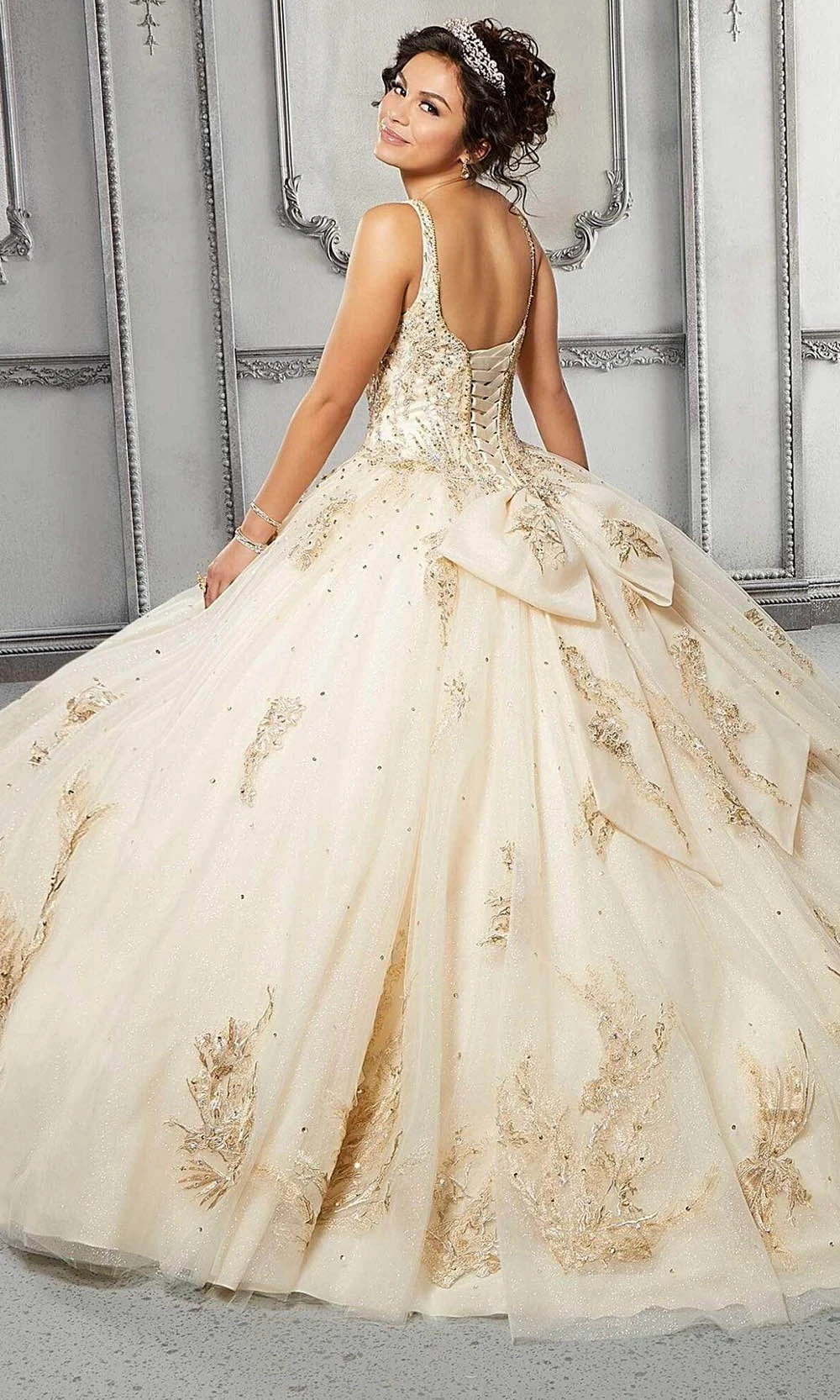 Make your grand entrance in this Vizcaya by Mori Lee 89311 ball gown. This evening gown showcases a scoop neckline supported by thick straps in a beaded and appliqued bodice having a scoop back with lace up back closure and bow finish. Get ready to enchant everyone in this Vizcaya by Mori Lee creation. More colors available. Please call our sales team at 855-700-4239.