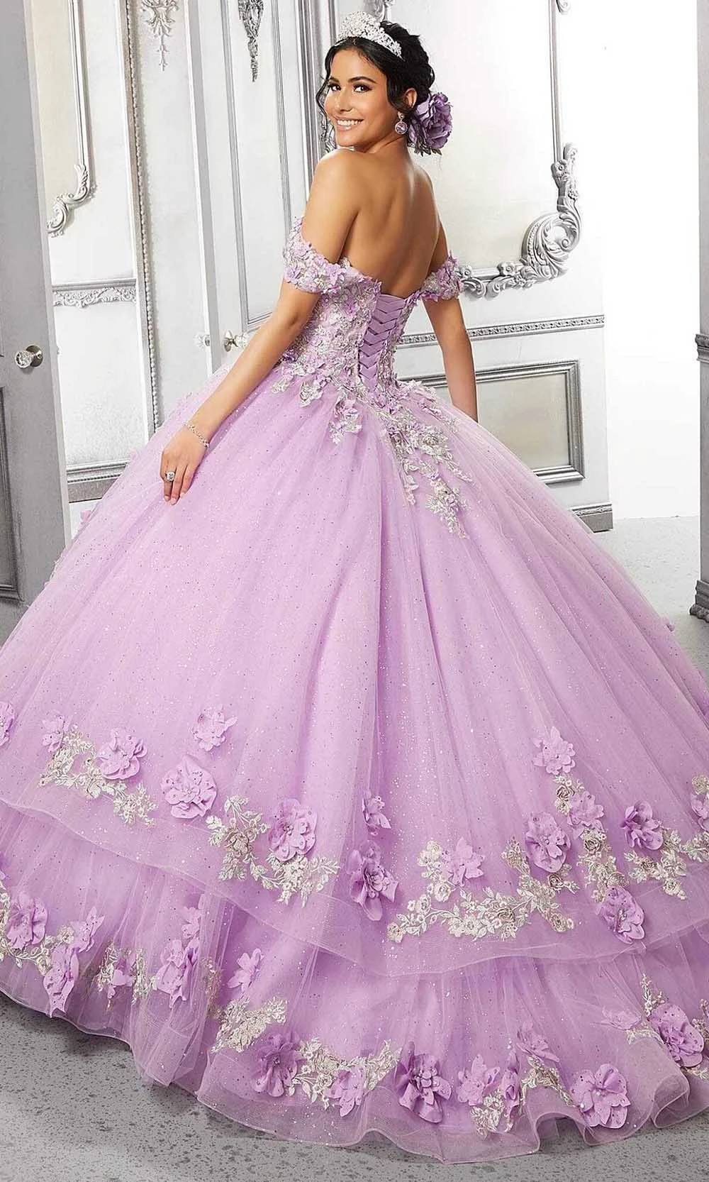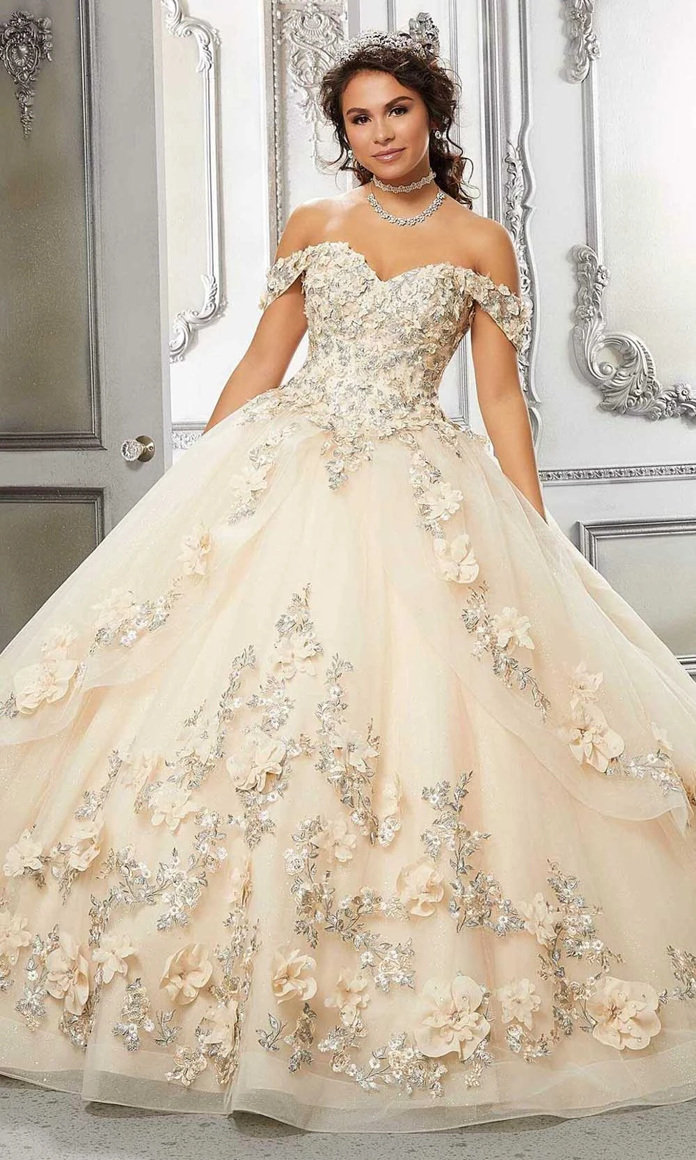 Glide into that spectacular black-tie event like an ethereal vision as you flaunt this gorgeous Mori Lee 89318. Bloom with loveliness as you wear this quinceanera dress that features a sweetheart neckline with an off-shoulder neckline. The top ha made with an floral applique fabric and the skirt is made with a floral applique tulle fabric. This dress will also make you shine as it has a touch of glitter. The back is an open back with a lace up ties that is made for security purposes that also adds to the elegance. Feel dainty and feminine in this enchantingly designed Mori Lee. More colors available. Please call our sales team at 855-700-4239.