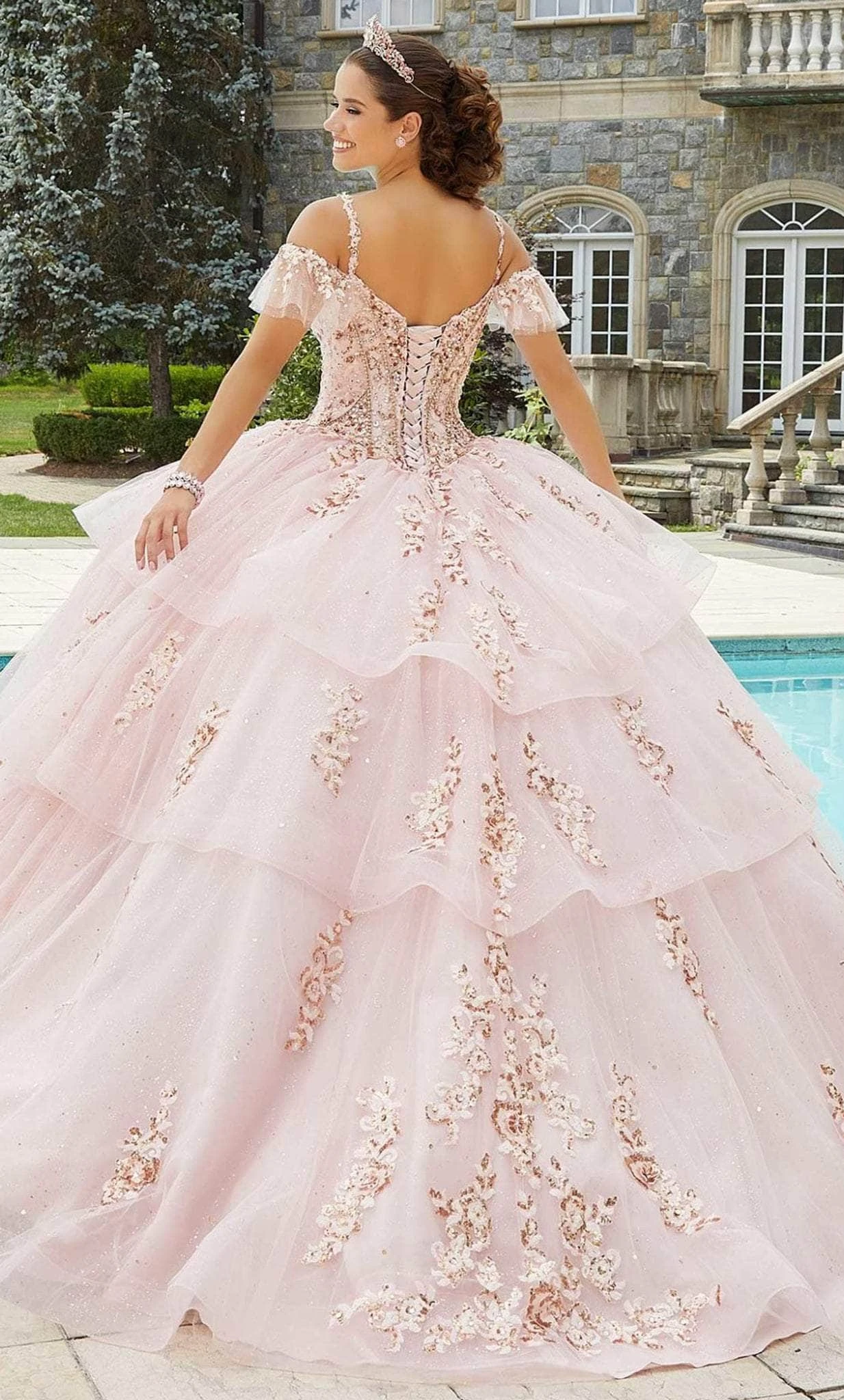Strike a pose as you enter the room in this exquisite Mori Lee 89402. Bedazzled with rhinestones, sequins, and beads to make sure you don’t dim a light on your special day. The V shape neckline of this dress accentuates the neck, chest, and collar bone. An exquisite ball gown silhouette is tailored with tiers and is showered with glitters allover. Secured at the back with a lace-up tie. Make your perfect day blossom with a promise of forever in this Mori Lee 89402 masterpiece. Model is wearing Blush/Rose Gold color.